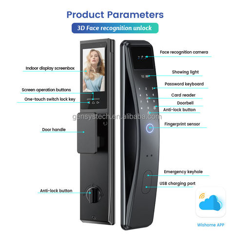 Venda Por Atacado Inteligente Bloqueio Automático Liga De Alumínio 3d Face Wishome App Impressão Digital Automática Inteligente Porta Fechaduras